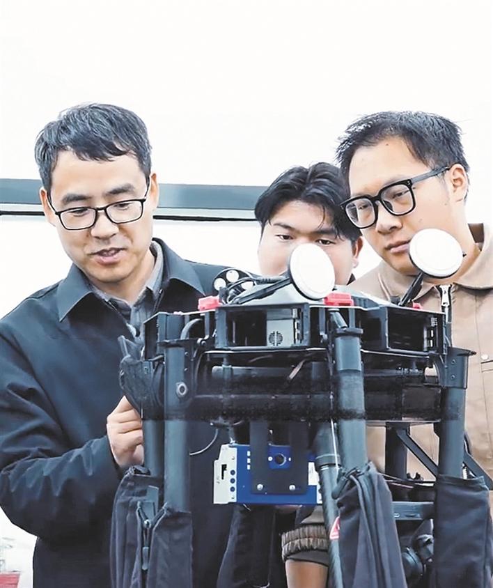 3月20日,张楠楠(左)和团队成员对植保无人机进行参数调整。胡彩艳 摄