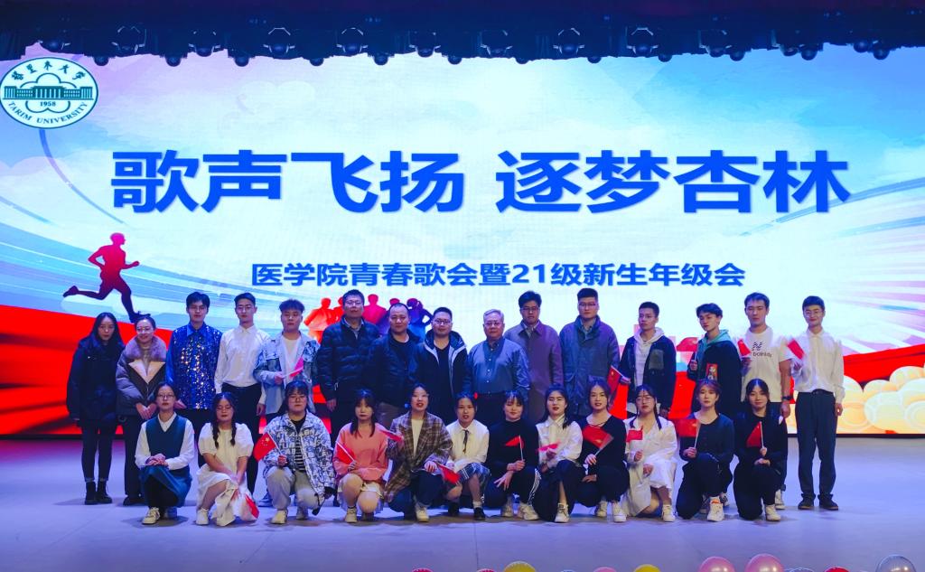 12月4日晚,医学院“歌声飞扬 逐梦杏林”青春歌会暨21级新生年级会在大学生活动中心举行。医学院党总支副书记、院长谢建新,党总支副书记胡斌与师生们一起观看晚会。
