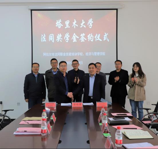 4月9日上午,经济与管理学院与阿拉尔市法同职业技能培训学校举行“法同奖学金”签约仪式。学院党委书记田国林、党委副书记、院长蒋志辉、新疆阿拉尔市法同职业技能培训学校执行董事、校长赵永杰、办公室主任田曼出席签约仪式,学院有关人员参加仪式。仪式由学院党委副书记谷建杰主持。