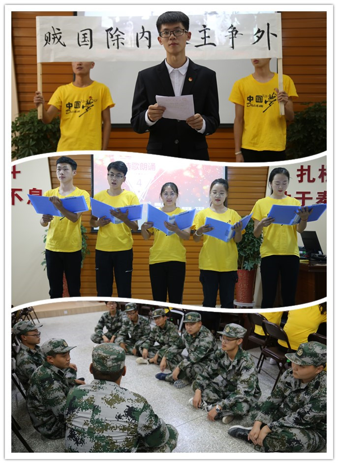 活动在嘹亮的团歌中拉开序幕。此次团日活动按照1919年、1949年、2019年、2049年四个时间阶段分为四个篇章。五四运动的情景再现,将时间拉回到1919年那个动荡的年代;情景剧《军垦魂》是对1949年建国初期王震将军带领部队屯垦戍边的致敬;紧接着同学们慷慨激昂的演讲《我在失败中成长》、《明亮的灯塔》以及朗诵《奋斗的青春最美丽》又将时间轨道拉回到2019年,掷地有声的演讲是对历史责任的勇于承担,更是对理想信念的坚定。同学们还用穿越时空隧道-给未来的自己一封信的形式与2049年的自己对话,旨在提醒自己不忘初心,牢记使命,争做扎根边疆、献身边疆的胡杨青年。