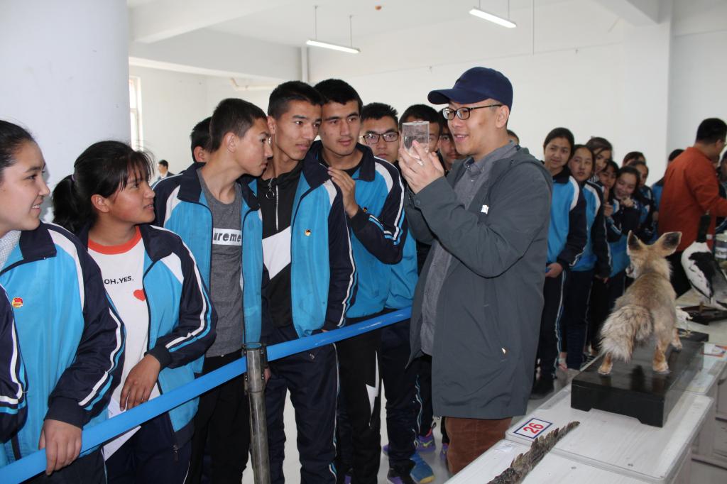 4月11日-13日,科普服务团先后进入和田地区墨玉县第五中学及墨玉县吐外特乡中小学开展科普活动。通过扁吻鱼(新疆大头鱼)、新疆岩蜥、塔里木兔、高山兀鹫等80余件动物实物标本的展示,辅以塔里木盆地环境变迁及生物多样性图片展板、宣传手册、问卷调查、科普纪念品发放等多种形式,向墨玉县青少年详尽介绍了环塔里木盆地生物多样性情况及作为生态脆弱区生态环境保护的迫切性和重要性。科普宣传结束后,科普服务团向部分学校赠送了用于课堂教学的骨骼标本和文具。