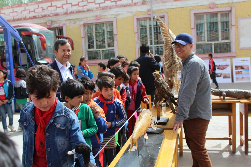 为发挥文化引领作用,弘扬科学精神,培养公民保护环境及野生动物的意识,在爱鸟周和世界地球日来临之际,在学校科协、统战部支持下,民盟塔里木大学支部、历史与哲学学院、生命科学学院师生深入南疆基层及农村中小学,开展了主题为“保护环境 和谐共生”野生动物保护宣传暨南疆野生动物标本展科普活动。