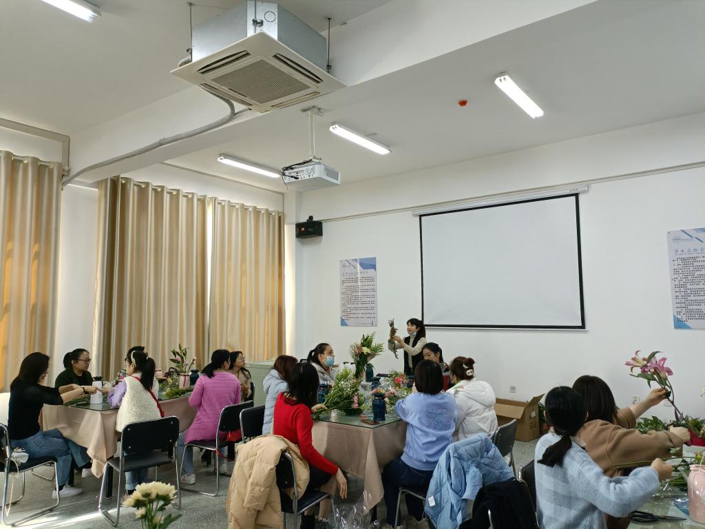 3月6日,为庆祝国际三八妇女节,体现学院党委对女性教职工的关心,经管院工会在文科实验楼201室组织开展教职工插花活动。