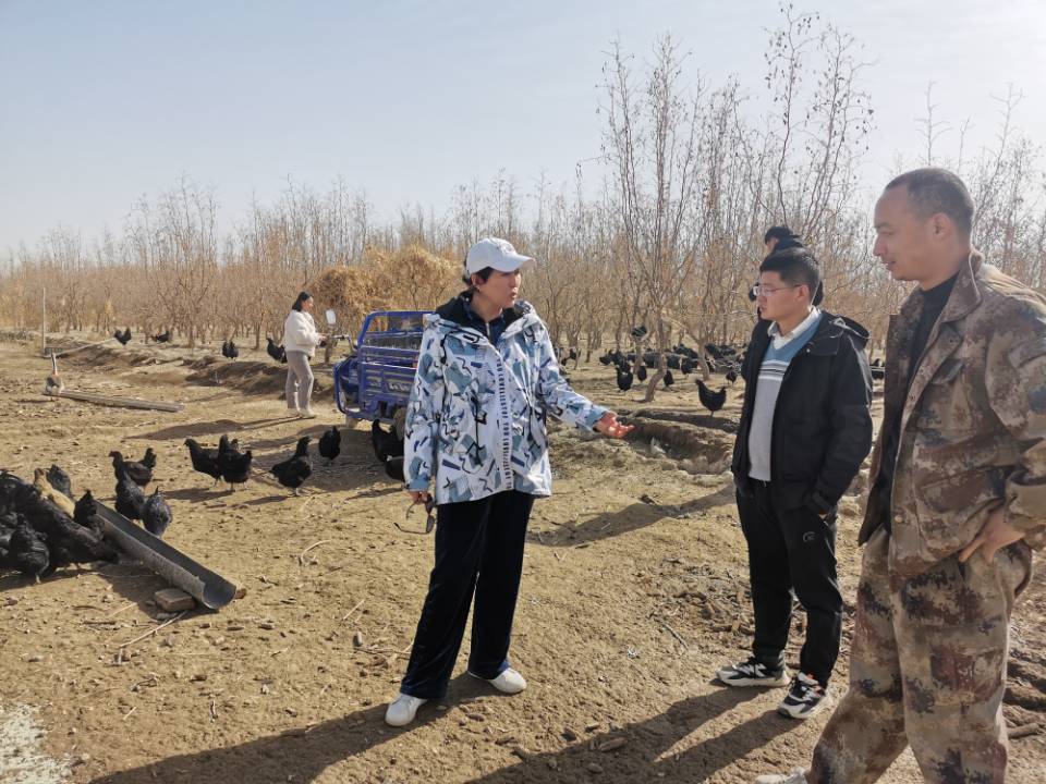3月4日上午,塔里木大学动物科学与技术学院格明古丽·木合台教授、王惠娥副教授等畜禽专家团队,带领研究生来到兵团第一师十一团七连畜禽养殖基地,开展春季林下养殖家禽技术培训及地方品种鸡种质资源保护项目交流。