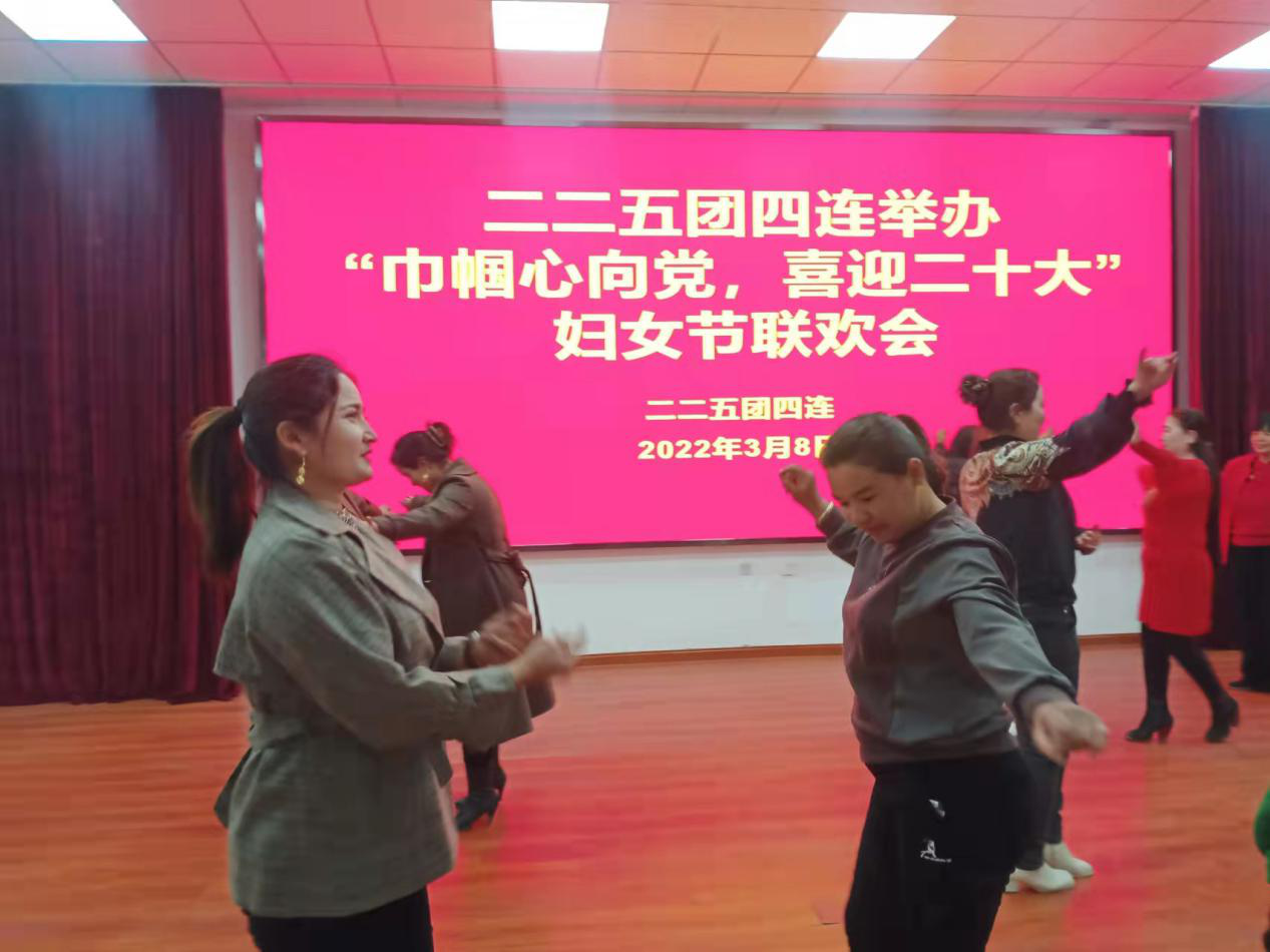 为铸牢中华民族共同体意识,丰富辖区居民群众节日文化生活,在国际妇女节到来之际,3月8日下午,我校驻二二五团四连“访惠聚”工作队举办“巾帼心向党,喜迎二十大”妇女节联欢会。