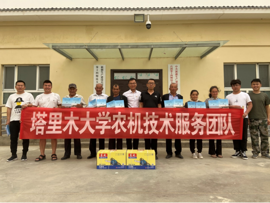 服务团队走近连队居民家中,了解他们的经济和生活情况,为他们一对一讲解农机检修和安全驾驶知识,为提高大家农机使用安全意识,还进行了农机安全事故警示宣传教育。并服务团队还为连队赠送了《农业装备运用及维护保养技术培训手册》和2台油锯。
