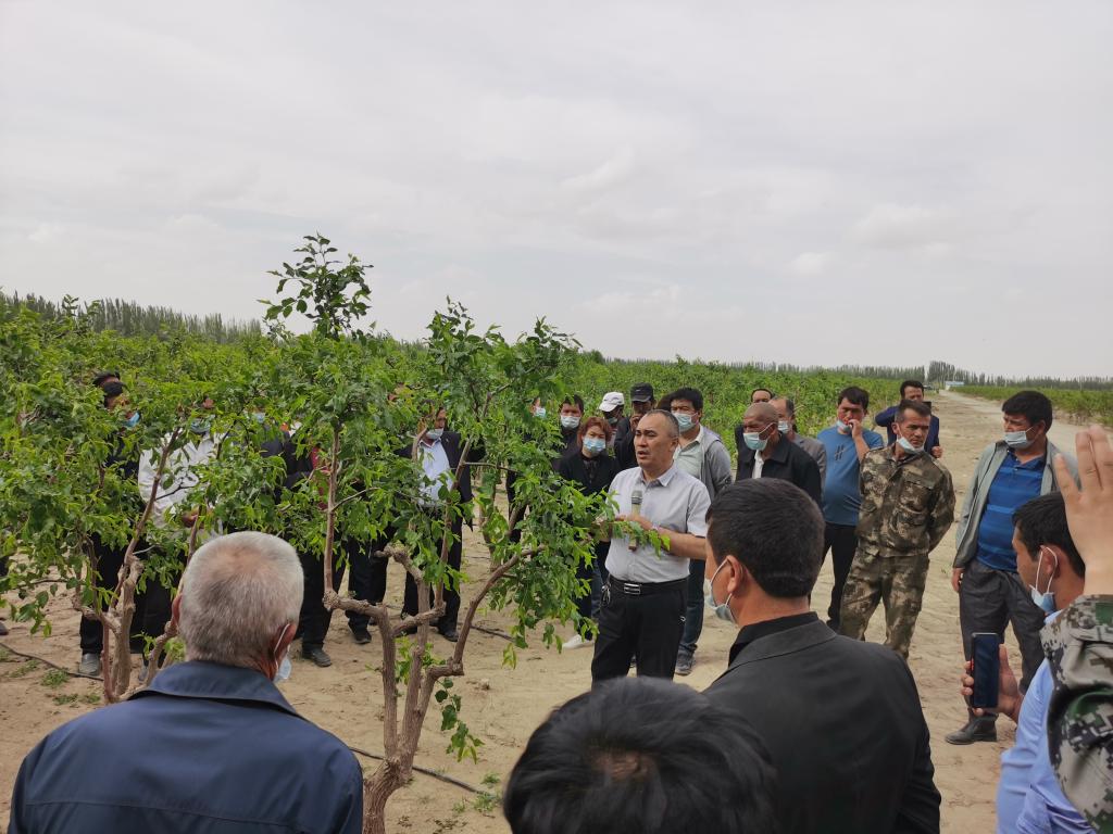 特色林果业是新疆十大产业之一,是农民增收致富和乡村振兴的重要支柱。6月4日,自治区林果业提质增效专家团成员、塔里木大学木核桃高效栽培团队木塔里甫·艾海提副教授,前往柯坪县盖孜里克镇开展红枣、核桃、间作模式茬口安排等夏季管理工作进行指导与培训。