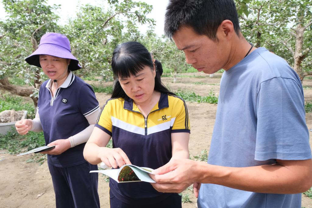 现场培训会上,王兰教授、冯浩教授、徐亮胜教授分别向团、连队技术骨干、果农共55人就果树腐烂病的典型症状、发生规律、防治措施等进行讲解,重点推荐了夏季淋干精准对靶防未病技术、“诱抗剂+菌肥”免疫诱抗技术、腐烂病监测预警技术等腐烂病综合防控新技术,现场发放了《苹果、梨树腐烂病综合防控理论与技术》40册。