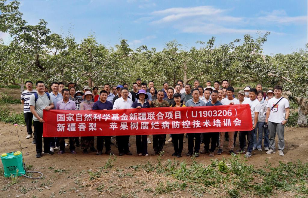 为做好果树腐烂病害防控工作,保障果树安全生产和产业发展,近年来,我校王兰教授团队依托《新疆香梨、苹果树腐烂病致灾机理和防控对策研究》(新疆联合基金项目)和《库尔勒香梨高效无菌授粉技术研究与示范》(南疆重点产业创新发展支撑计划),先后在第一师、第三师等地建立了若干个苹果、香梨树腐烂病综合防控示范基地,取得了较好的示范效果。