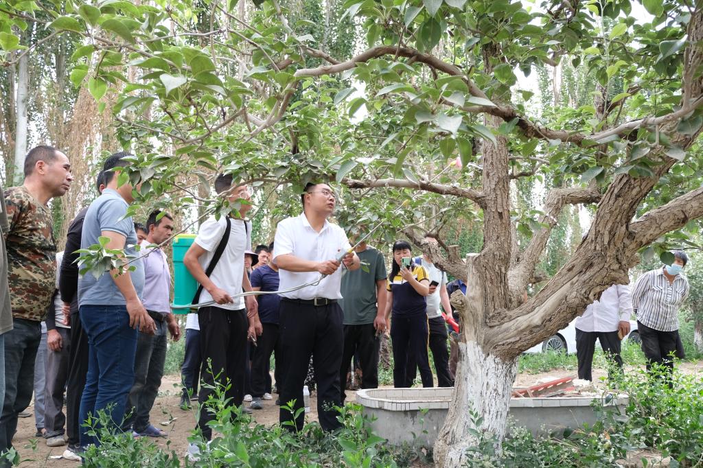 6月10日-11日,西北农林科技大学康振生院士团队骨干冯浩教授、徐亮胜教授一行来到我校,与王兰教授团队一起到第一师11团、12团,第三师44团、53团开展果树腐烂病防控技术现场培训。