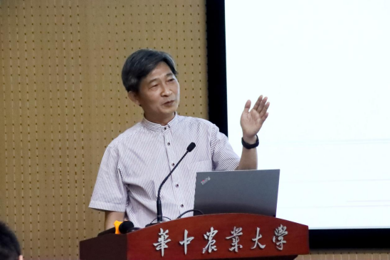 仪式上,华中农业大学校党委书记高翅教授以“守正创新,育时代新人”为题作了专题报告。向塔大师生致以崇高的敬意。他谈到,大学是教育共同体,是学术共同体,更是价值共同体。一所大学的品格是由老师决定的,有什么样的老师,就有什么样的大学和学生;一所大学的育人品性、学术品貌、文化品位,都是由老师决定的。惟有老师和学生最紧密结合在一起,才能实现言传身教。