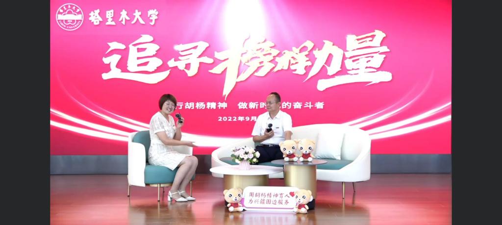 访谈中,李志军教授讲述了自己35年如一日扎根大漠育胡杨的生动故事,分享了胡杨栽培研究相关成果,把“胡杨公主”对胡杨的爱,对南疆大地的眷恋淋漓尽致的表达。周保平教授为大家讲述了高数与数学建模的故事,希望同学们永攀科学高峰,保持对知识的无限渴望和追求,勤学好问、虚心请教,做一个乐于研究、勤于钻研、敏于求知、勇于实践的大学生。李丹丹副教授讲述了她辅导员生涯的十年岁月,与学生亦师亦友、共同进步的成长点滴,为同学们开启精彩、丰富、活力、充实的大学生活指点迷津。