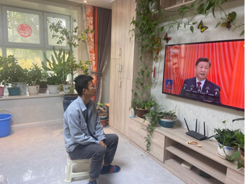 2022年10月16日上午,机械电气化工程学院教师在家收看党的二十大开幕直播盛况。