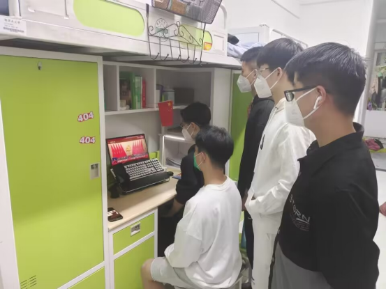 2022年10月16日上午,化工院在校生在东16号学生公寓408宿舍收看党的二十大开幕直播盛况。
