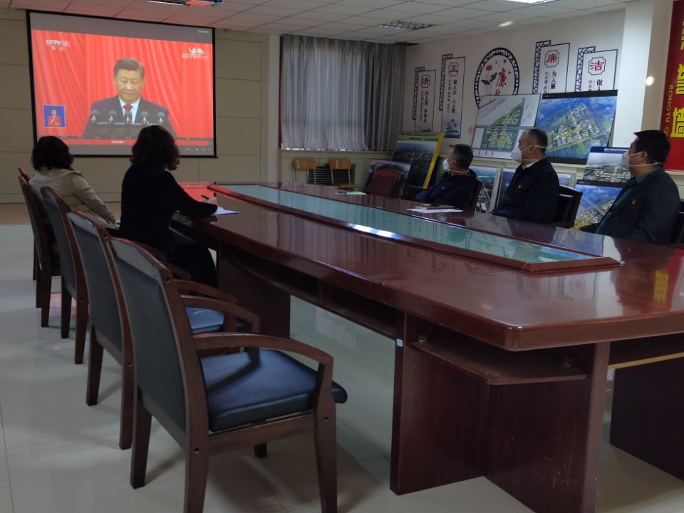 2022年10月16日上午,胡杨干部培训中心工作人员在中心二楼会议厅集中收看党的二十大开幕直播盛况。