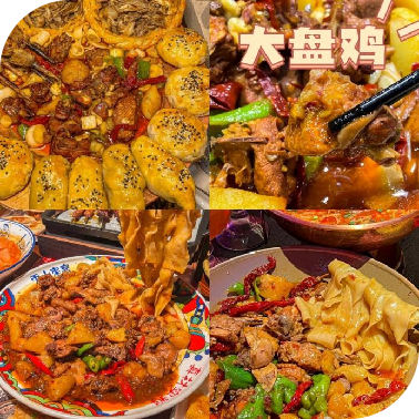 新疆大盘鸡是新疆地区名菜,来源说法多种,真实的来源已无法考究,大约起源于80年代后期,主要用料为鸡块和土豆块,配皮带面烹饪而成。菜品色彩鲜艳,有爽滑麻辣的鸡肉和软糯甜润的土豆,辣中有香,粗中带细,而且经济实惠,亲朋聚会食用尚佳。