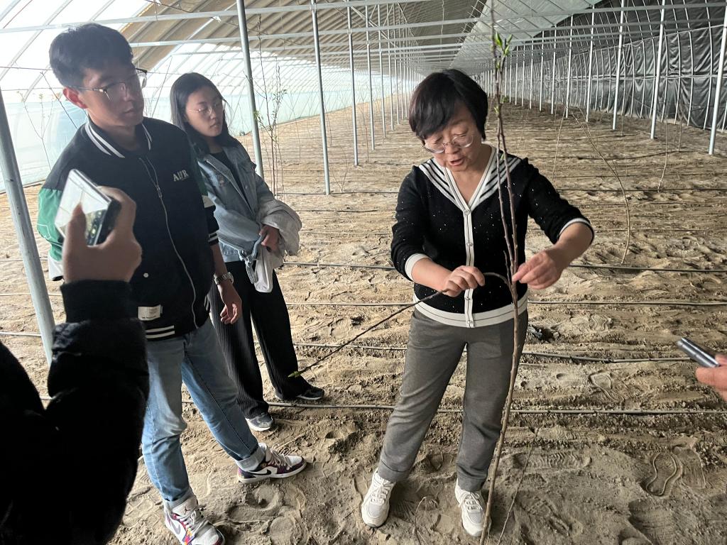 专家团队在设施鲜食枣、设施桃等种植基地现场仔细查看了园区建设情况和枣、桃、杏的生长状况,与园区管理人员进行交谈,了解设施大棚的日常管理情况。吴翠云教授从设施枣嫁接、抹芽、水肥管理,设施桃整形修剪及果实品质提升技术、新植桃、杏的定干管理等进行了指导,为大家解疑释惑。