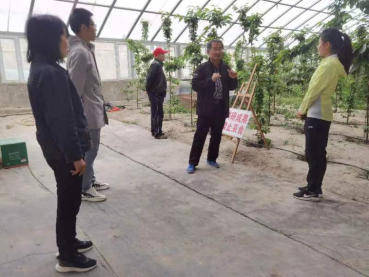 在铁门关市佳沐园艺科技公司,公司负责人介绍了公司发展状况,充分认可研究生入驻科技小院开展服务工作,大家对试验基地设施桃和无花果栽培研究、研究项目收集的资源材料和进展深入探讨交流。