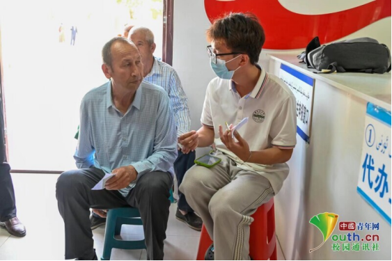 图为当地初中生协助团队成员与当地居民沟通交流。中国青年网通讯员 张国庆 刘枭 摄