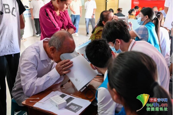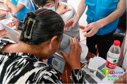 图为实践团队为村民进行眼底健康筛查。中国青年网通讯员 张国庆 刘枭 摄