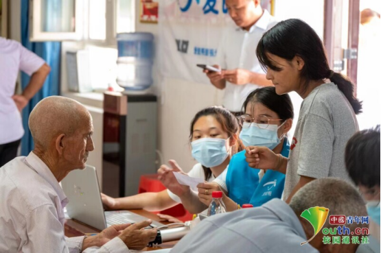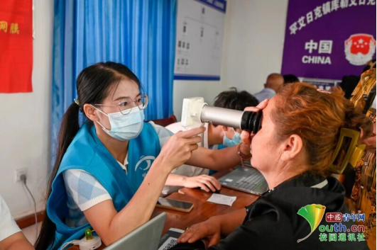 图为团队成员为当地居民进行眼底病变知识科普。中国青年网通讯员 张国庆 刘枭 摄