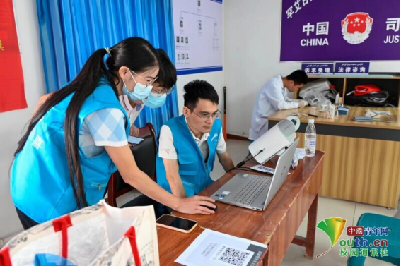 图为当地中心卫生所领导前来活动现场参观交流。中国青年网通讯员 张国庆 刘枭 摄