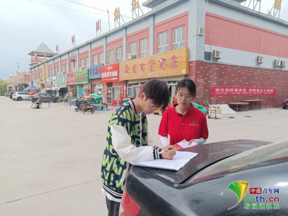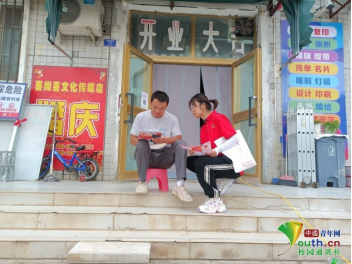 图为实践团成员在街边调研。中国青年网通讯员 肖霖钧 摄