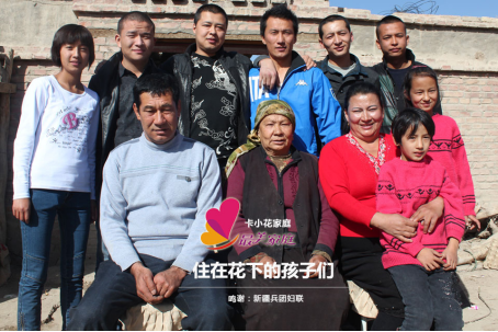 卡小花·卡德尔的家,是四团出了名的大家庭,是一个独一无二的大家庭,她的家庭成员里,除了卡小花·卡德尔和丈夫阿尔肯·吐尔地,还有12个孩子。孩子中有维吾尔族、汉族,除了两个亲生孩子,还有2个汉族孤儿、8个维吾尔族孤儿。