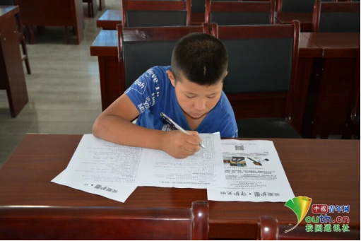 图为团场小朋友认真填写调查问卷的画面。中国青年网通讯员屈越供图