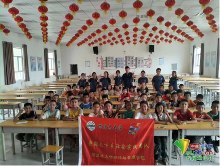 图为小队成员教小学生做数学计算题。中国青年网通讯员温菁楠摄