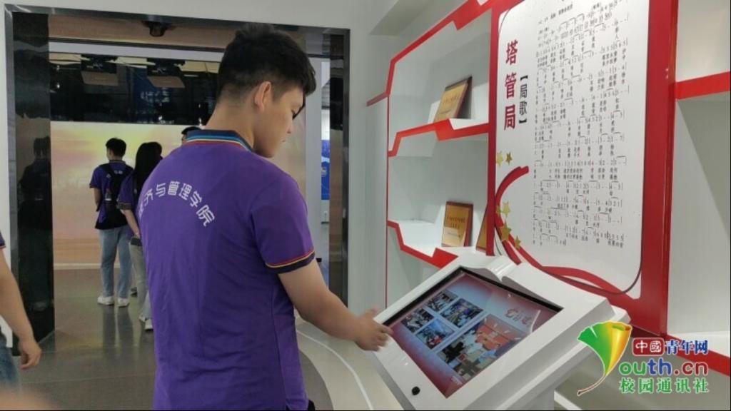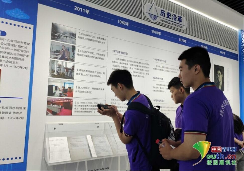 图为队员通过电子书了解塔里木河水利开发过程。中国青年网通讯员郭辉摄图为团队