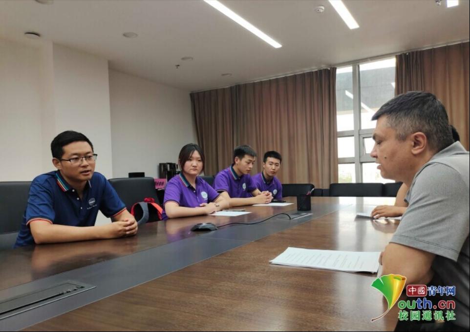 图为真旺旺队成员访谈三十一团一连工作人员。中国青年网通讯员郭辉摄