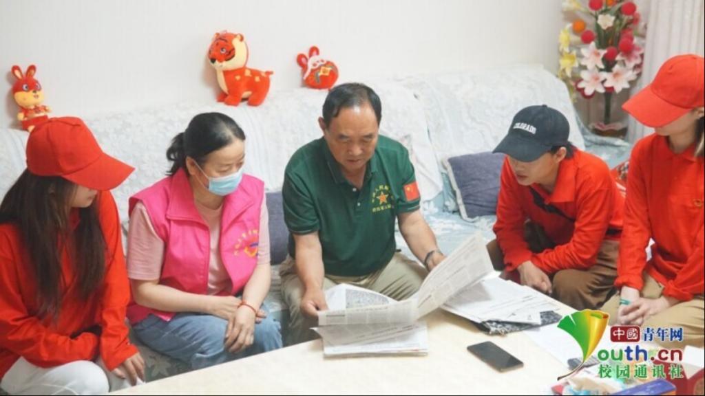 图为实践团队采访曾参与对越自卫反击战的谢宗琪老人。中国青年网通讯员孙金伟摄