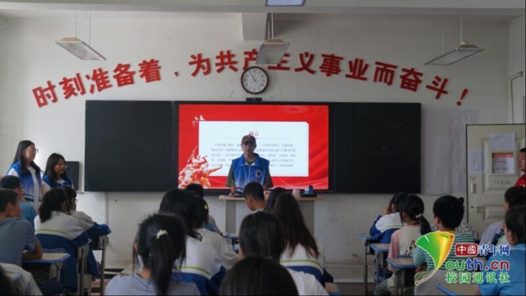 图为实践团队在第一师十一团中学开展老兵故事分享会。中国青年网通讯员孙金伟摄