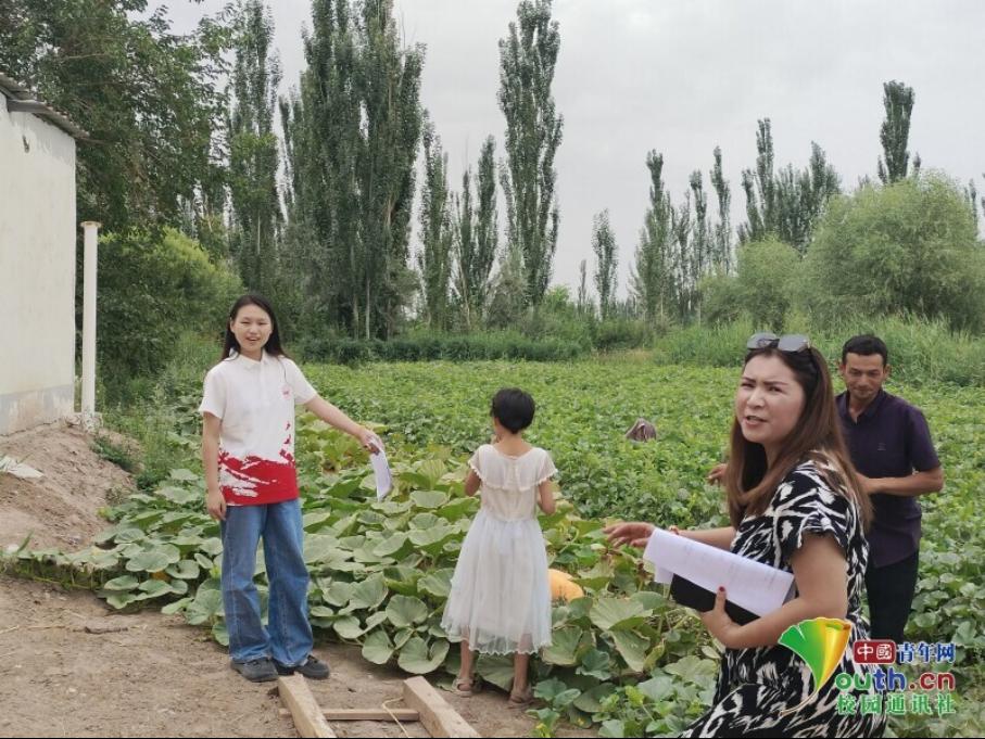 图为实践团成员在当地村民农田里调查本地主要农产品。中国青年网通讯员朱鑫雨供图
