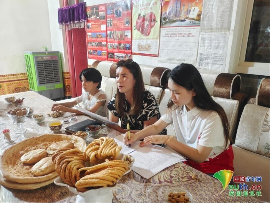 图为实践团成员在村民家中记录问卷内容。中国青年网通讯员彭兆德供图