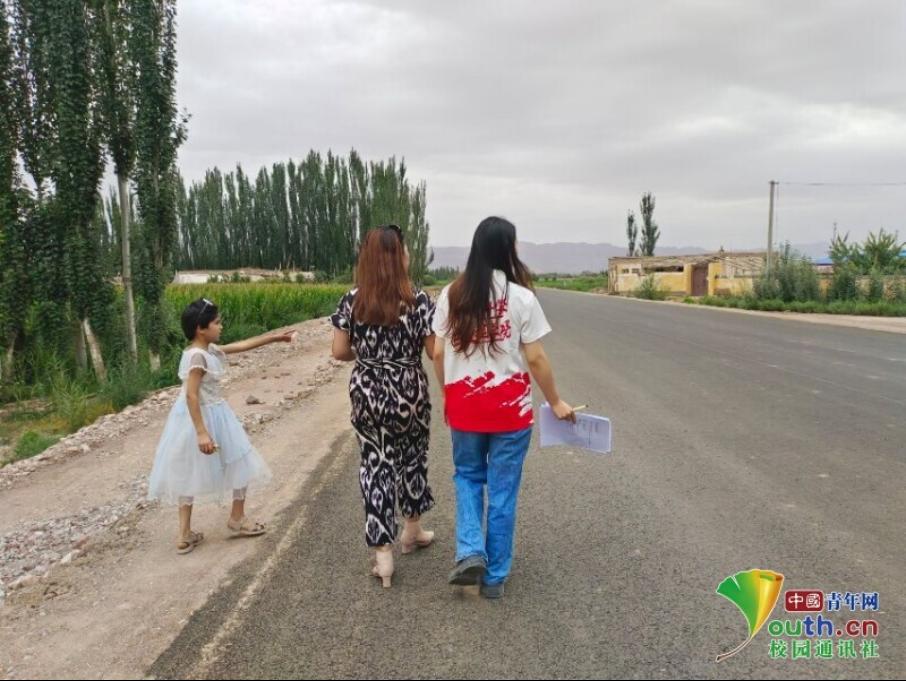 图为实践团成员步行前往村民家中的路上。中国青年网通讯员朱鑫雨供图