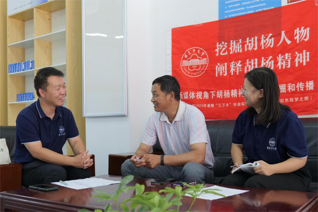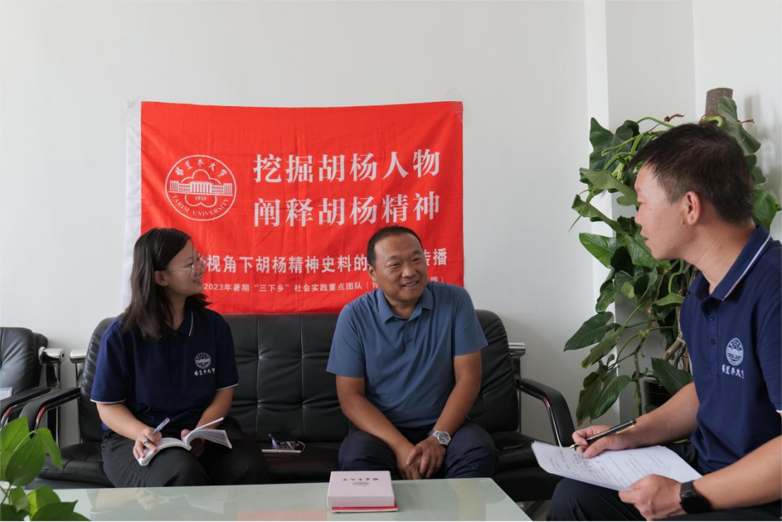 2023年校级“三下乡”四支重点团队“新媒体视角下胡杨精神史料的挖掘和传播——寻访塔里木大学优秀杰出胡杨校友”暑期“三下乡”社会寻访团成员、塔里木大学人文学院网络与新媒体2021级2班学生季亚楠说:“今天寻访的三位校友都有不同的塔大情怀,唯一不变的是胡杨精神在他们前行道路中指引的方向,这是精神的力量,这是智慧的力量,让我在他们的生动故事中深刻感受了胡杨精神的魅力。我也要继承和发扬这种精神力量,根植祖国大地,实现人生理想。”