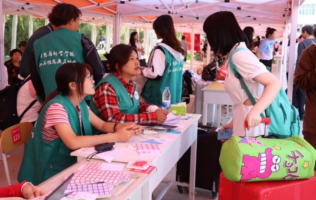 迎新现场,志愿者热情引导新生办理报到手续,主动协助新生搬运行李,用微笑和服务减少他们初入校园的陌生感,展现了我院“以心迎新”的互助之情。