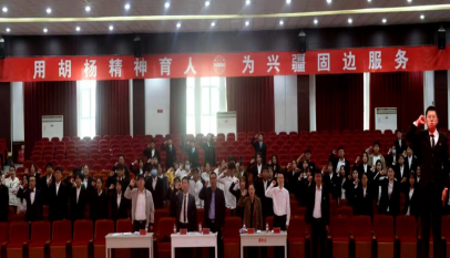 “我将牢记党的教诲,听党话、跟党走,赓续红色血脉,传承红色基因,践行胡杨精神,不断增强‘四力’,在新闻宣传的赛道上接力跑出最好成绩……”最后,胡杨·全媒体(融媒体)中心全体记者宣誓。