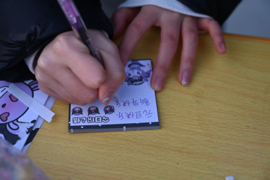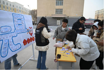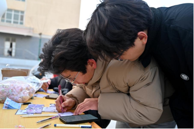 胡杨学子们走近活动现场,纷纷拿起手中的笔,在精美的贺卡上写下新年心愿。