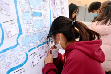 学生络绎不绝,大家纷纷驻足观看,感受着这份温暖的祝福。