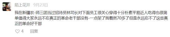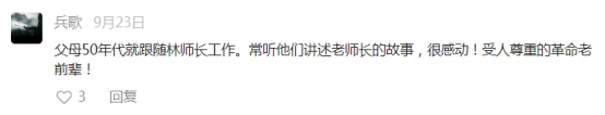 “一路走过来,他(我的父亲林海清)都是对党的事业忠心耿耿,对个人生死置之度外。那个时候毛主席常说,一个人做点好事并不难,难的是一辈子做好事,我认为他就做到了。从我身上来讲,我觉得,我父母的这些(优良传统),我学不完。”