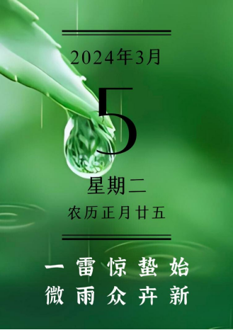 惊蛰,又名“启蛰”,是二十四节气中的第三个节气。“蛰”,指“藏伏”,昆虫入冬藏伏土中;“惊”指“惊醒”,天上的春雷惊醒蛰虫。惊蛰时节,春雷始惊,惊醒蛰伏于地下越冬的蛰虫。惊蛰节气的标志性特征是春雷乍动、万物生机盎然。