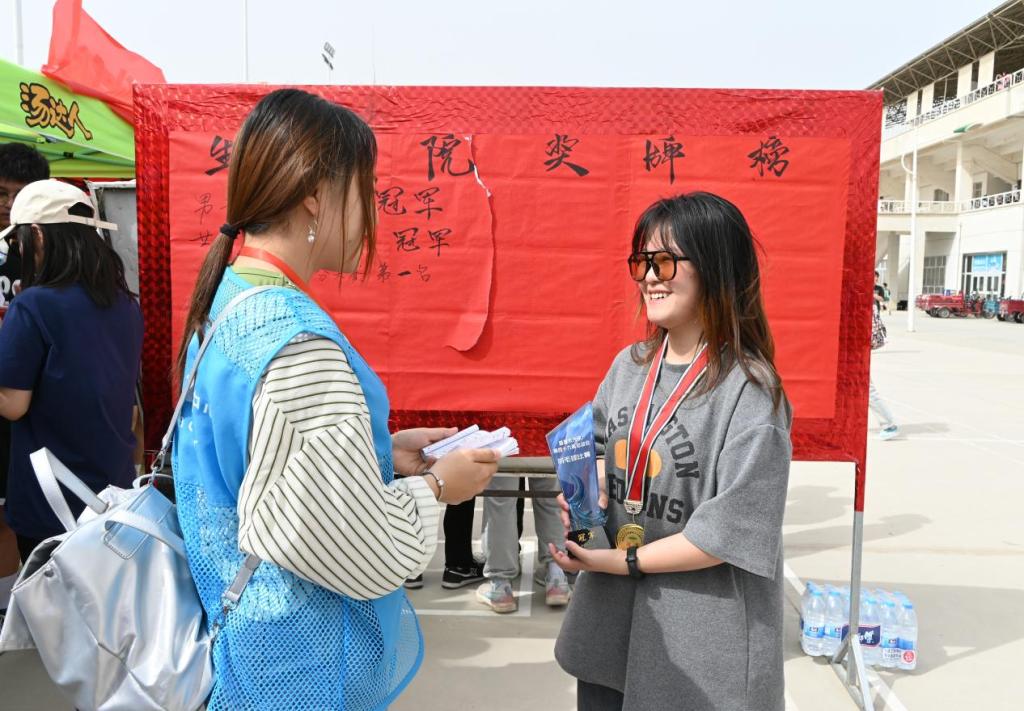 4月24日,随着塔里木大学第四十九届运动会的开幕,团体项目迎来了颁奖时刻,记者走近冠军队伍,采访获奖感言。