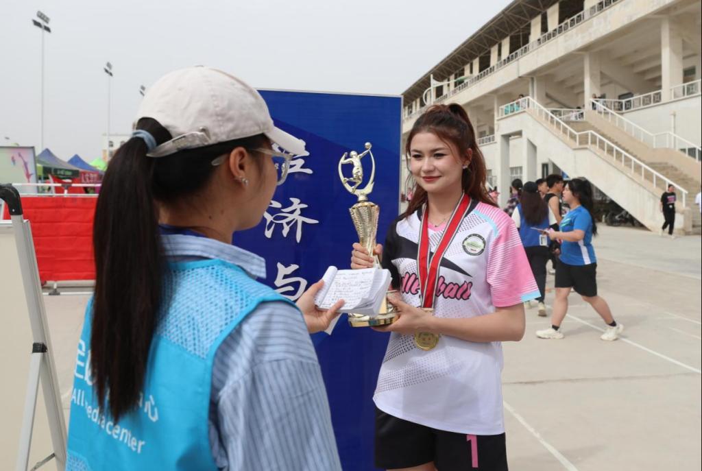 经济与管理学院女子排球队队长、工商管理2021级1班古丽努尔·阿不都热依木说:“荣誉的背后是汗水和泪水,每天训练时间很长、压力很大,也会因为拼尽全力而受伤,但因为热爱,大家都坚持下来了,我想这就是体育精神对个人能力和素质的磨砺,它是份宝贵的财富。”