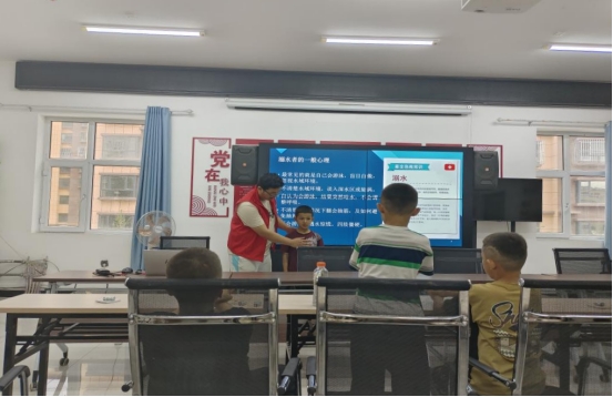 团队成员还通过现场讲授、情景演示、模拟训练等方式向社区儿童开展防溺水宣传教育,提升大家的安全意识和防护自救能力。