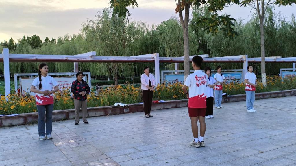 7 月6日,实践团来到城区商场、广场人流密集区域,热情地向过往居民普及夏季饮食安全知识,着重强调如何挑选新鲜食材、辨别食品保质期以及正确的食品储存条件等关键要点。同时,向居民宣传推广八段锦教学通知安排。