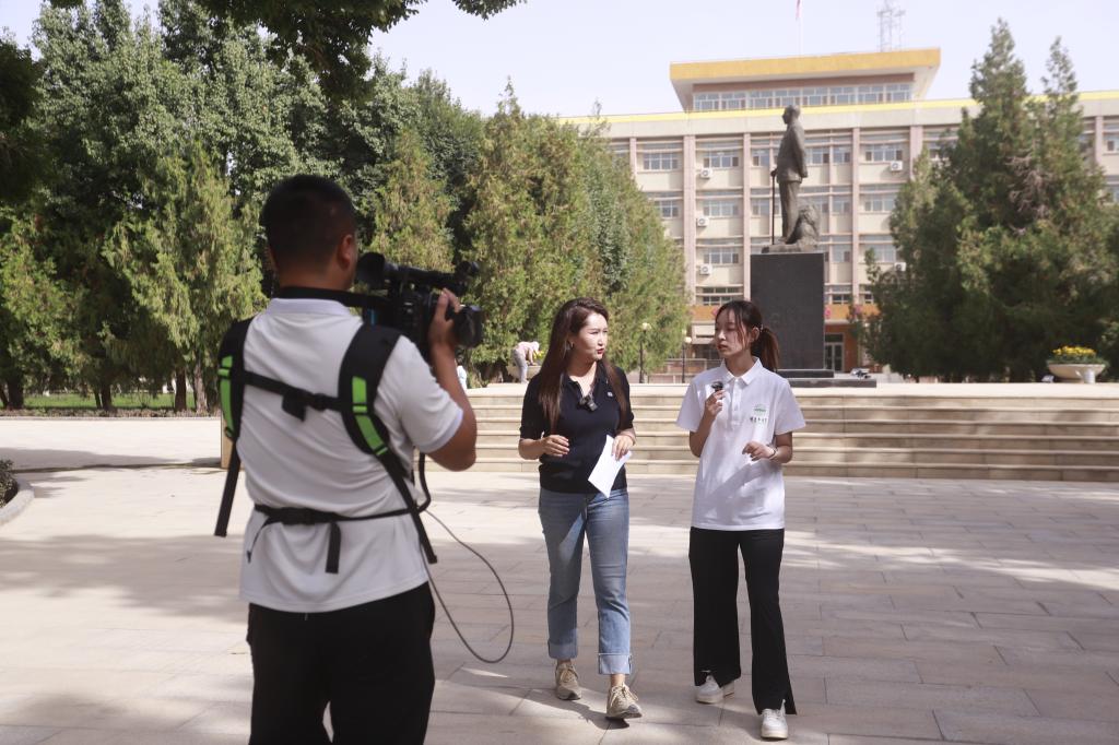 兵团日报记者和塔大学生主播先后来到综合教学楼、新时代广场、二号楼迎新报到处、红色文化广场、园艺林学试验站等地,透过镜头与新生一起走进食堂、宿舍、教学楼,沿途了解学校发展历史和校园便捷服务,听专家教授介绍专业发展前景和学科优势特色,沉浸式感受自然、绿色、美丽的塔大形象,近距离体验周到、热情、温馨的迎新氛围。