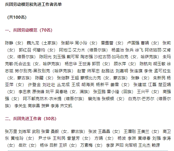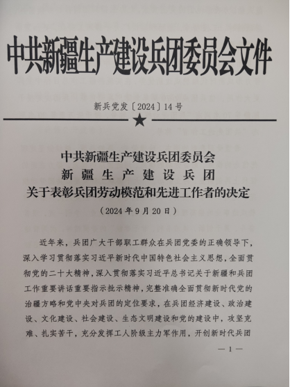 日前,中共新疆生产建设兵团委员会、新疆生产建设兵团联合下发“关于表彰兵团劳动模范和先进工作者的决定”,值兵团成立70周年之际,决定授予陈静等70名同志“兵团劳动模范”称号,授予张万里等30名同志“兵团先进工作者”称号。塔里木大学农学院万素梅教授位列其中,获“兵团先进工作者”称号,享受兵团级劳模待遇。